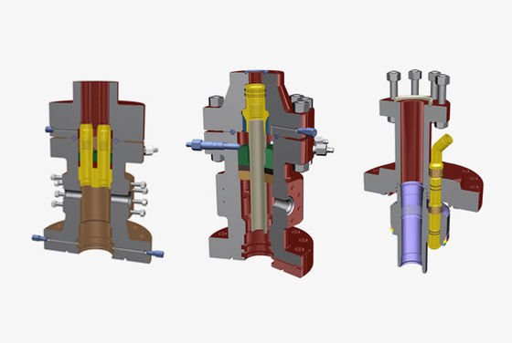 يسمح تصميم المخرج ثنائي الجانب لرأس الغلاف بتزويد الإسمنت ، ومراقبة غرق البئر والتحكم فيه ، وحقن سائل التوازن وما إلى ذلك. يتميز تصميم رأس الغلاف بكتف هبوط 45 درجة.يتجنب هذا التصميم الأضرار التي لحقت بمناطق الختم من خلال أدوات الحفر ويمنع اختبار المكونات ومشاكل تثبيت واقي النفخ عند تطبيق الضغط.يسمح هذا التصميم أيضًا بتحديد الموضع الرأسي الدقيق للأختام الحلقية وتحويل خط التحكم ومنافذ الاختبار.