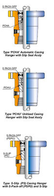 هناك نوعان رئيسيان من شماعات الغلاف ، النوع المسنن (مغزل) والنوع المنزلق.تشتمل علاقة الغلاف من النوع المنزلق على عدد من الطرز مثل GW WD و WE.تُستخدم شماعات WD النموذجية لتوصيل رأس الغلاف بغلاف السطح. عند توصيله بالغلاف. يتم إغلاق الأسنان المنزلقة للشماعات بإحكام حول الغلاف باستخدام القوة الخارجية.تم تصميم شماعات الطراز W لتمكين الوزن الساكن للغلاف من تنشيط مانع التسرب ليعمل.يعمل كلا الطرازين WE والنموذج G من خلال تنشيط الختم يدويًا.